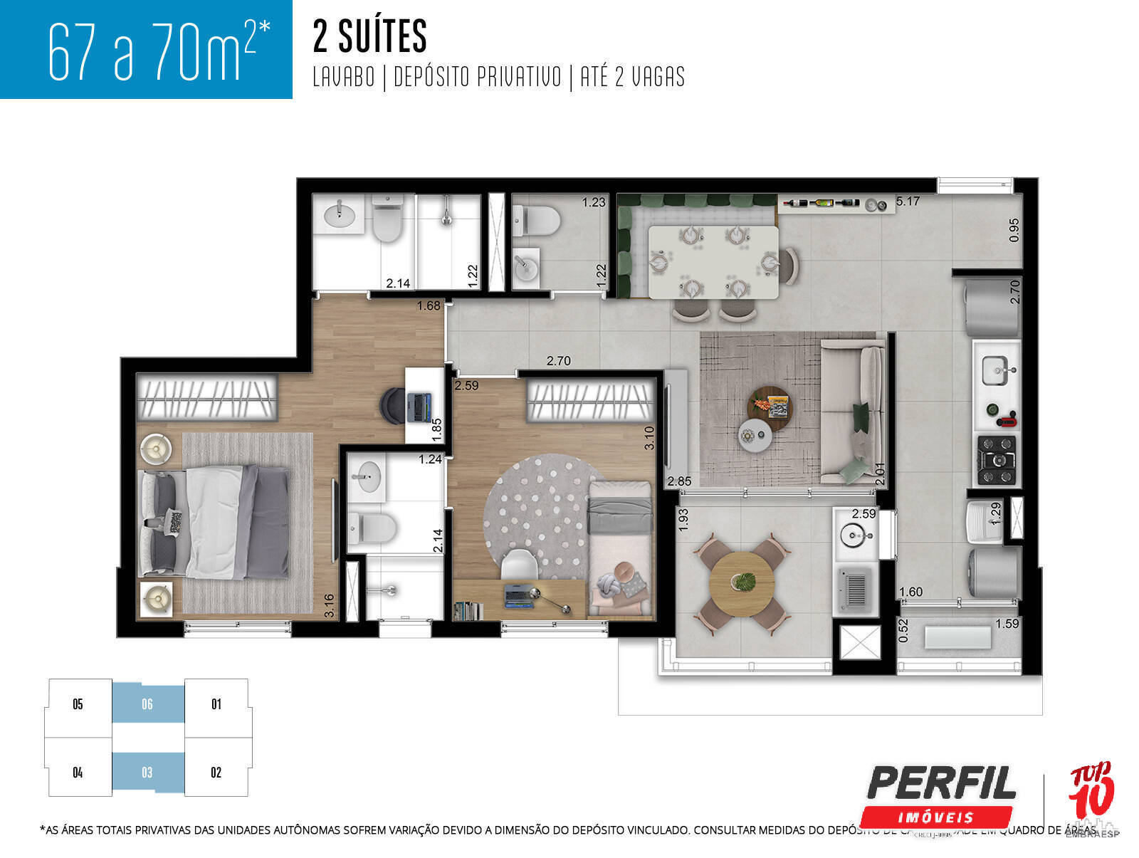 - 02 dormitórios aconchegantes com suite