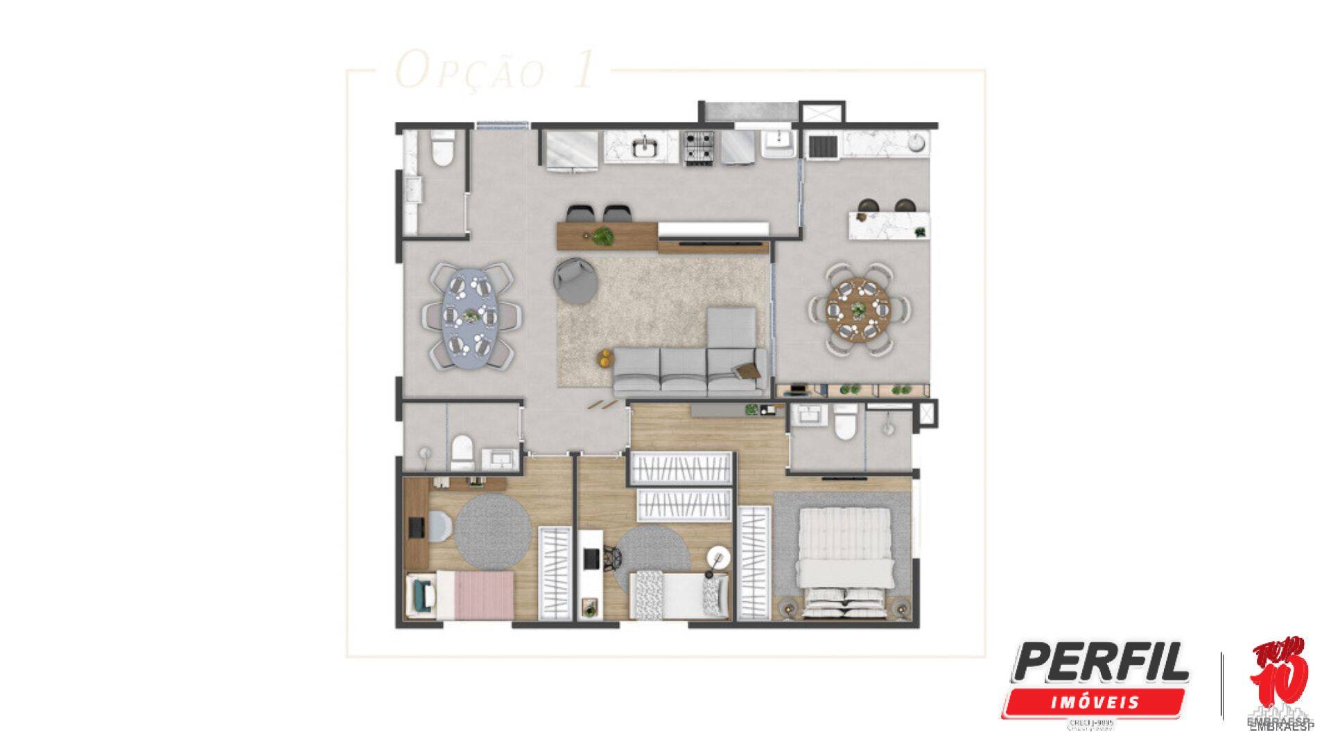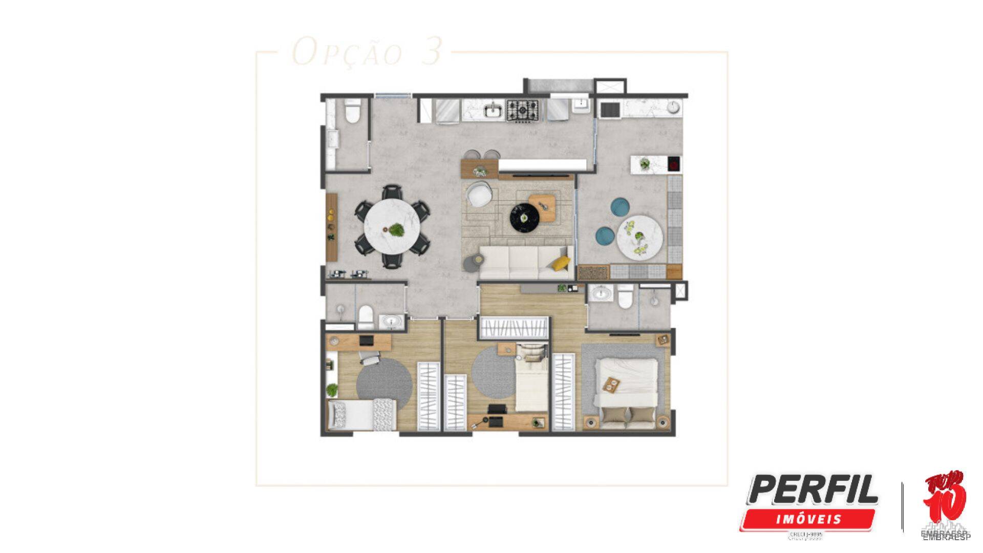 • 3 dormitórios, sendo 1 suíte