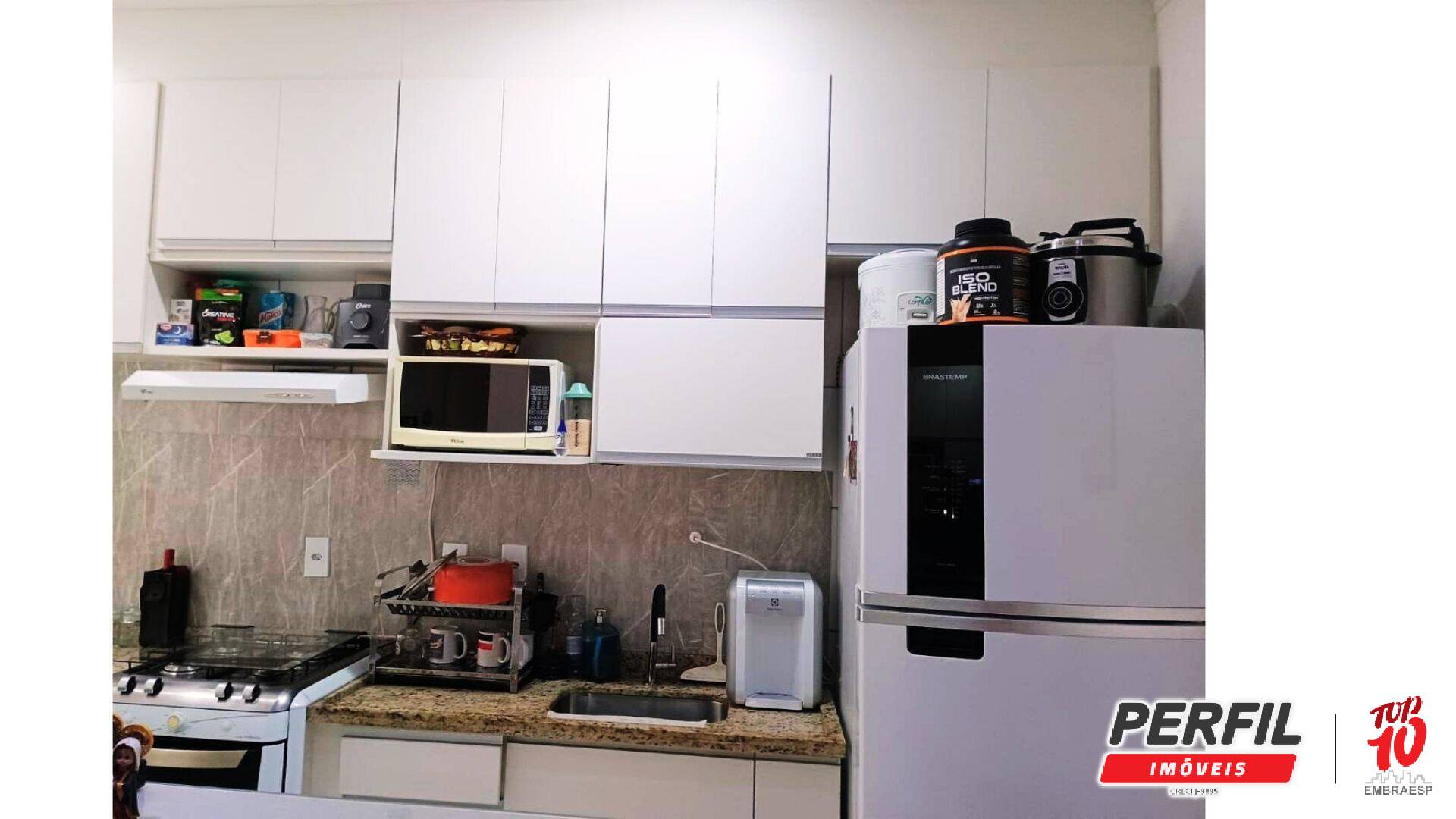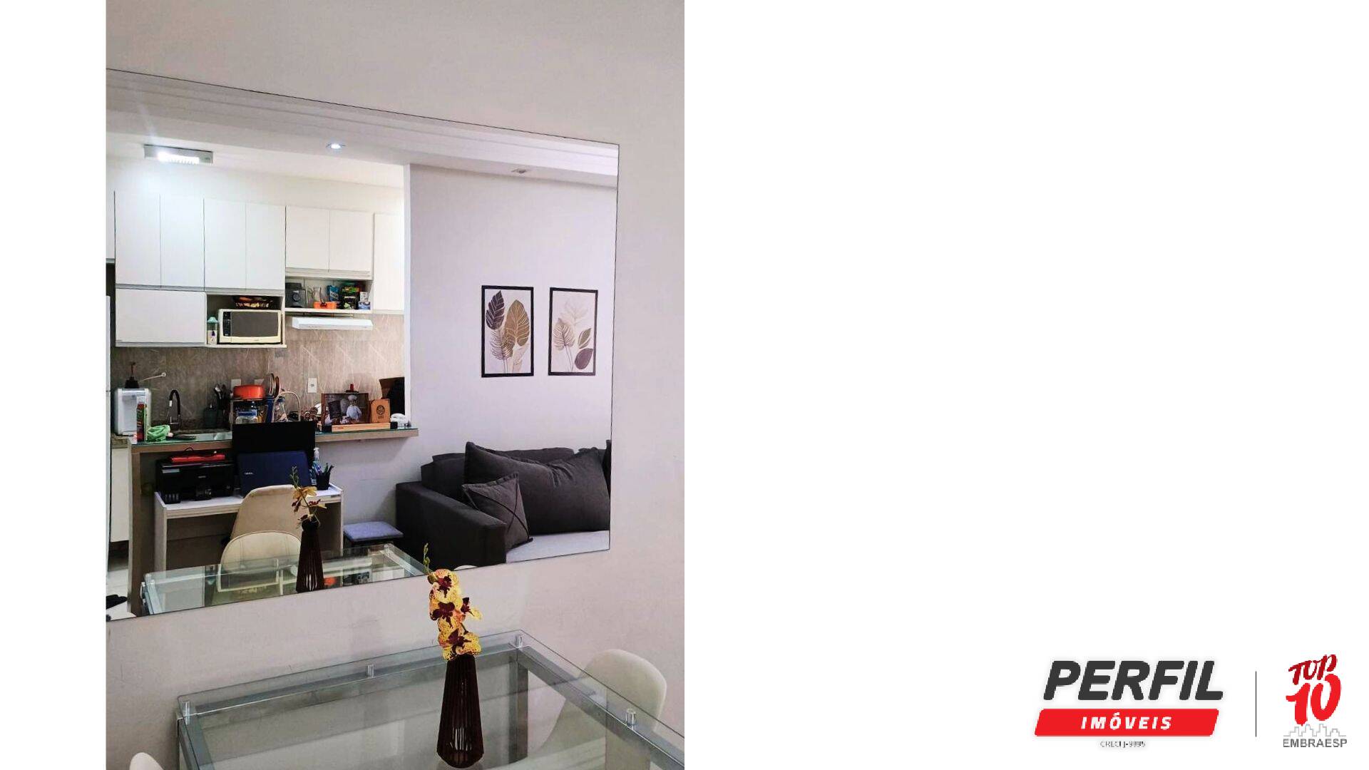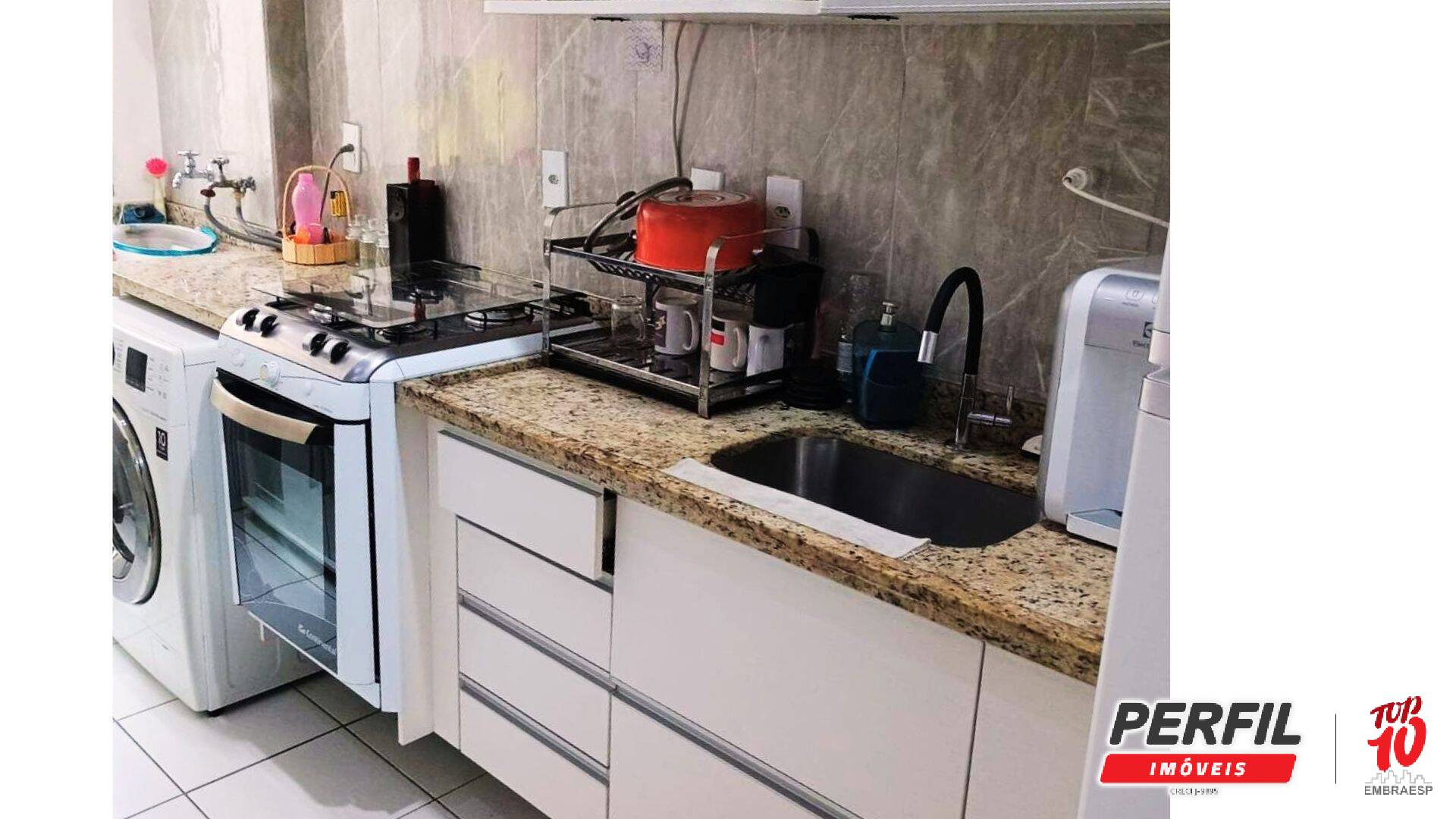 A cozinha planejada, equipada com armários modernos, oferece ótima organização e aproveitamento inteligente dos espaços, além de estar conectada à área de serviço. O imóvel conta ainda com 1 banheiro bem acabado e 1 vaga de garagem descoberta, proporcionando mais comodidade e segurança.