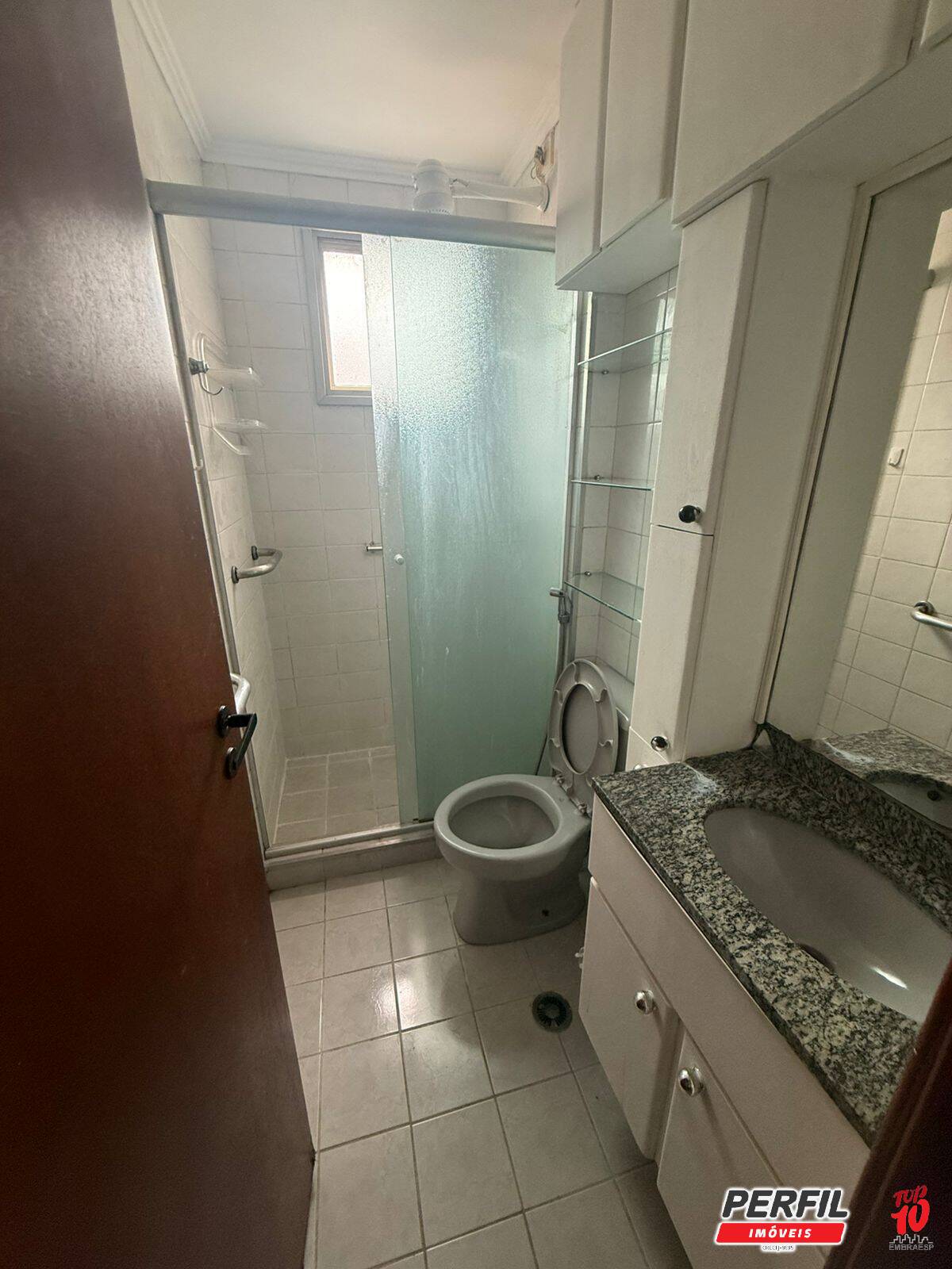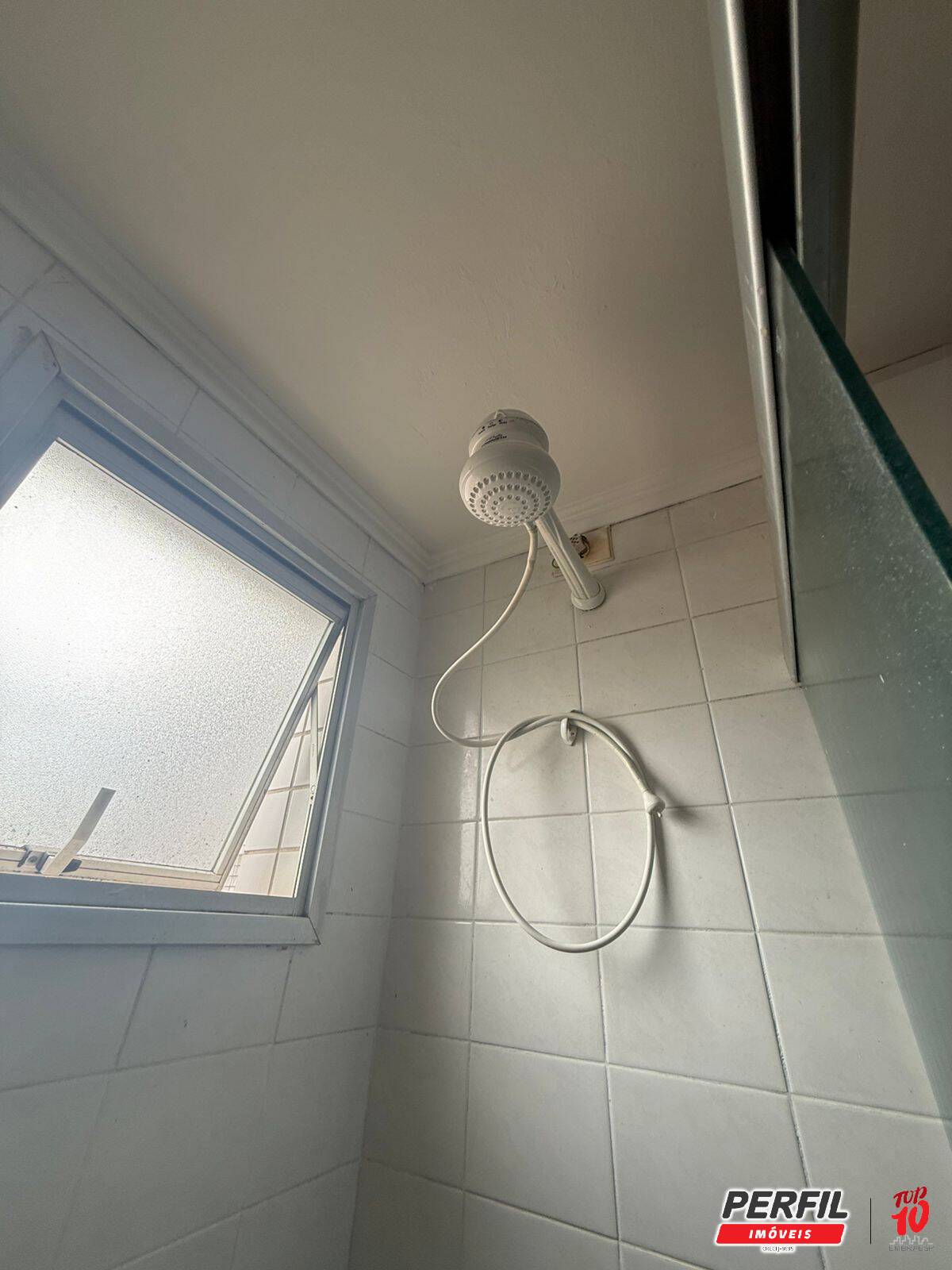 -banheiro com armário e chuveiro elétrico;