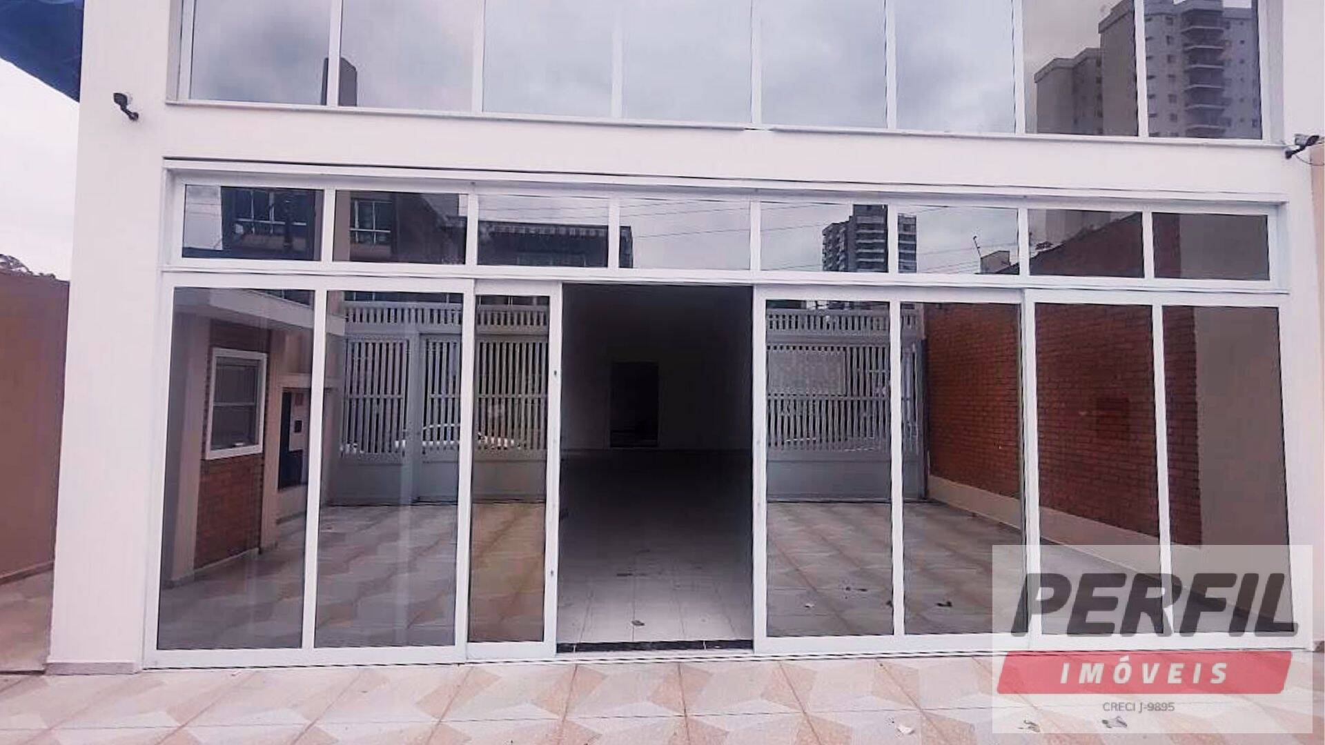 - Fachada em prédio comercial, com grande fluxo de pedestres e veículos.