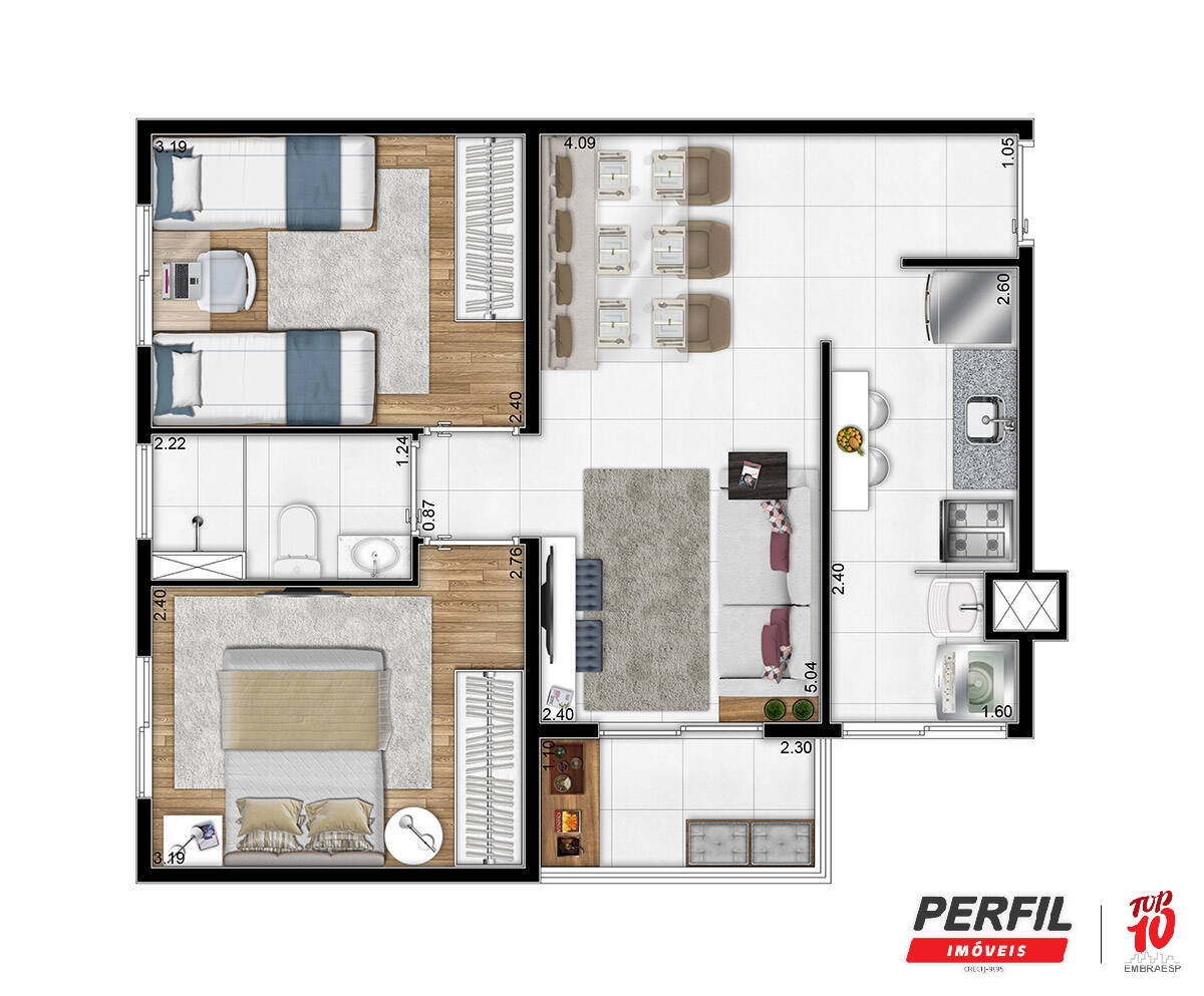 - 2 dormitórios aconchegantes