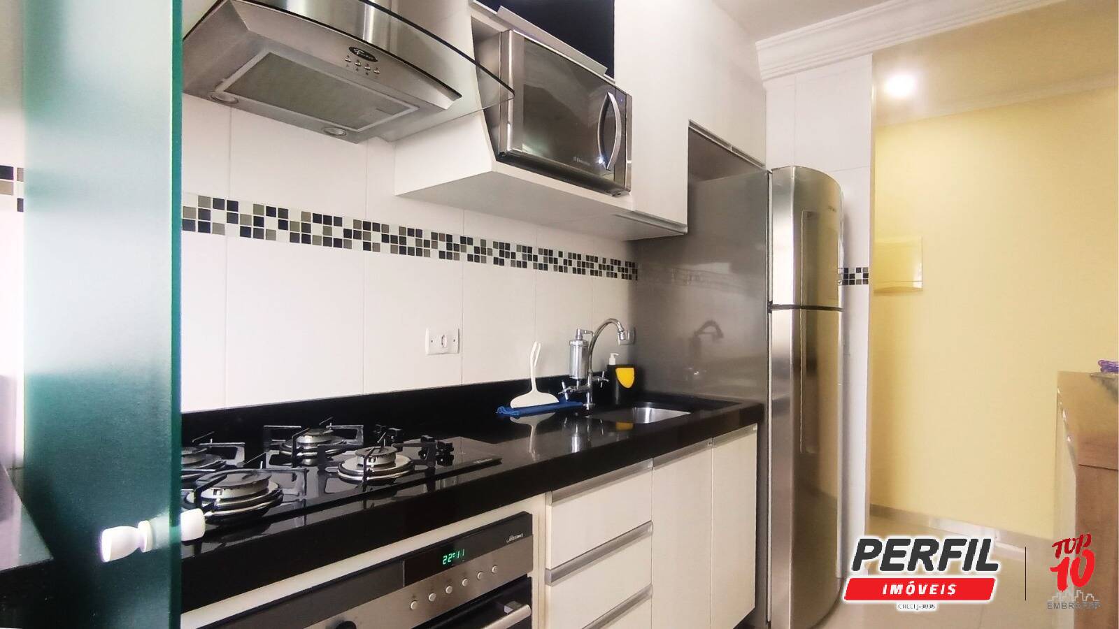 - Cozinha equipada com armários, cooktop e sugar;