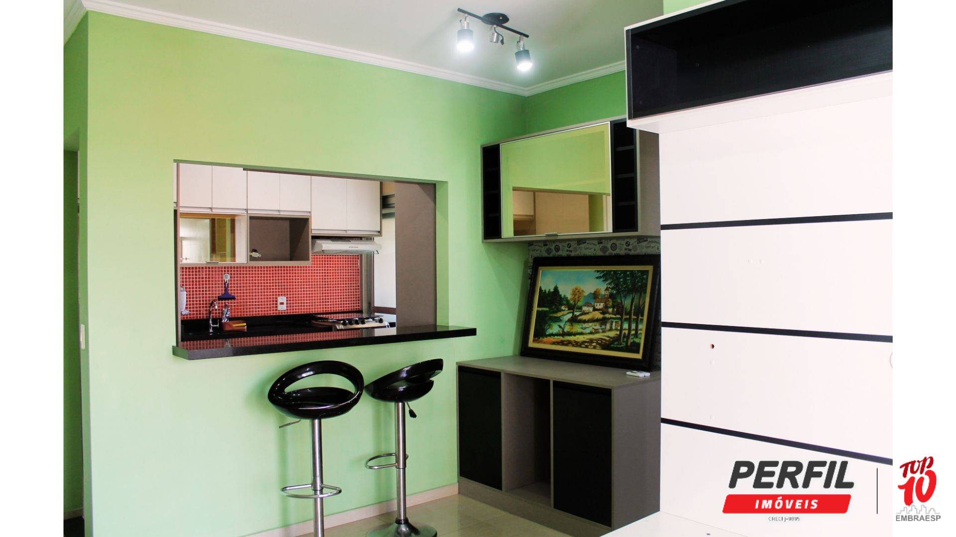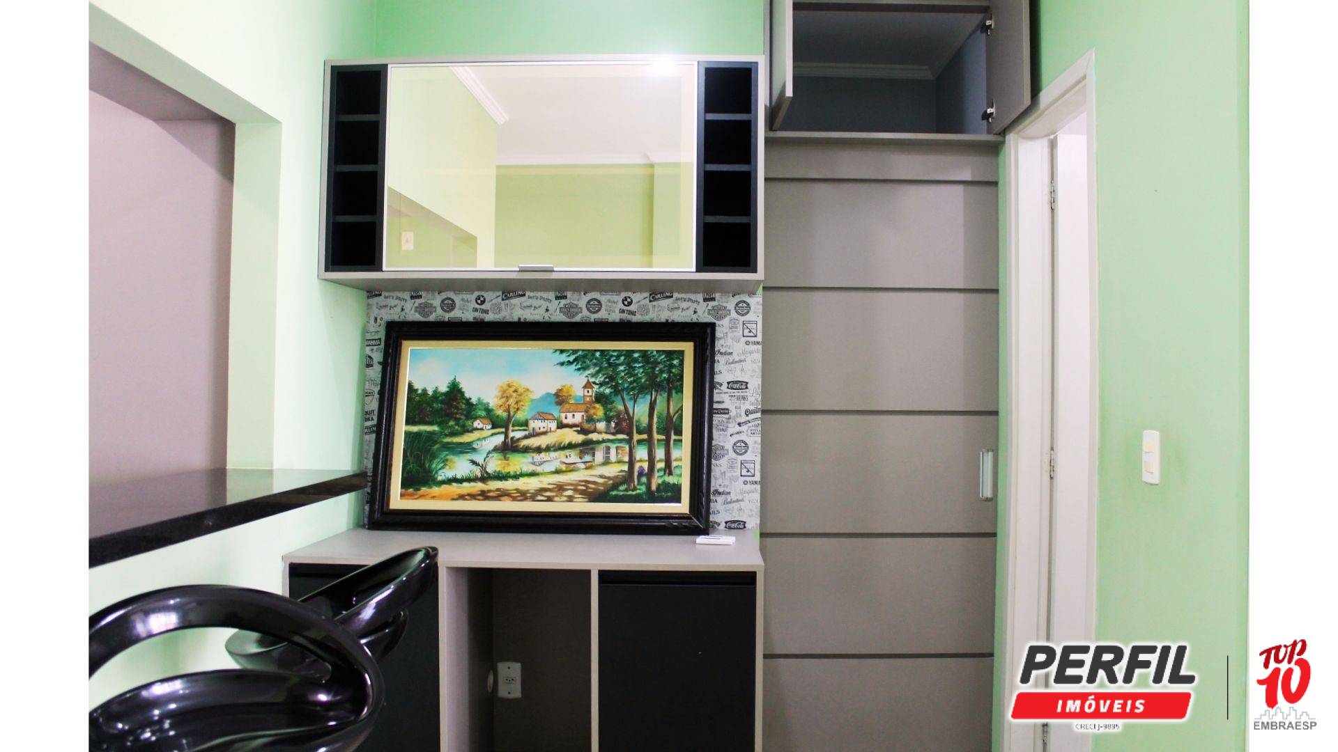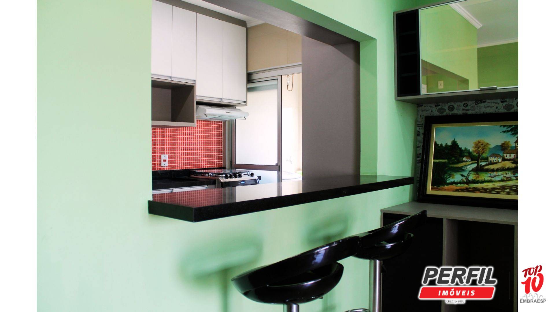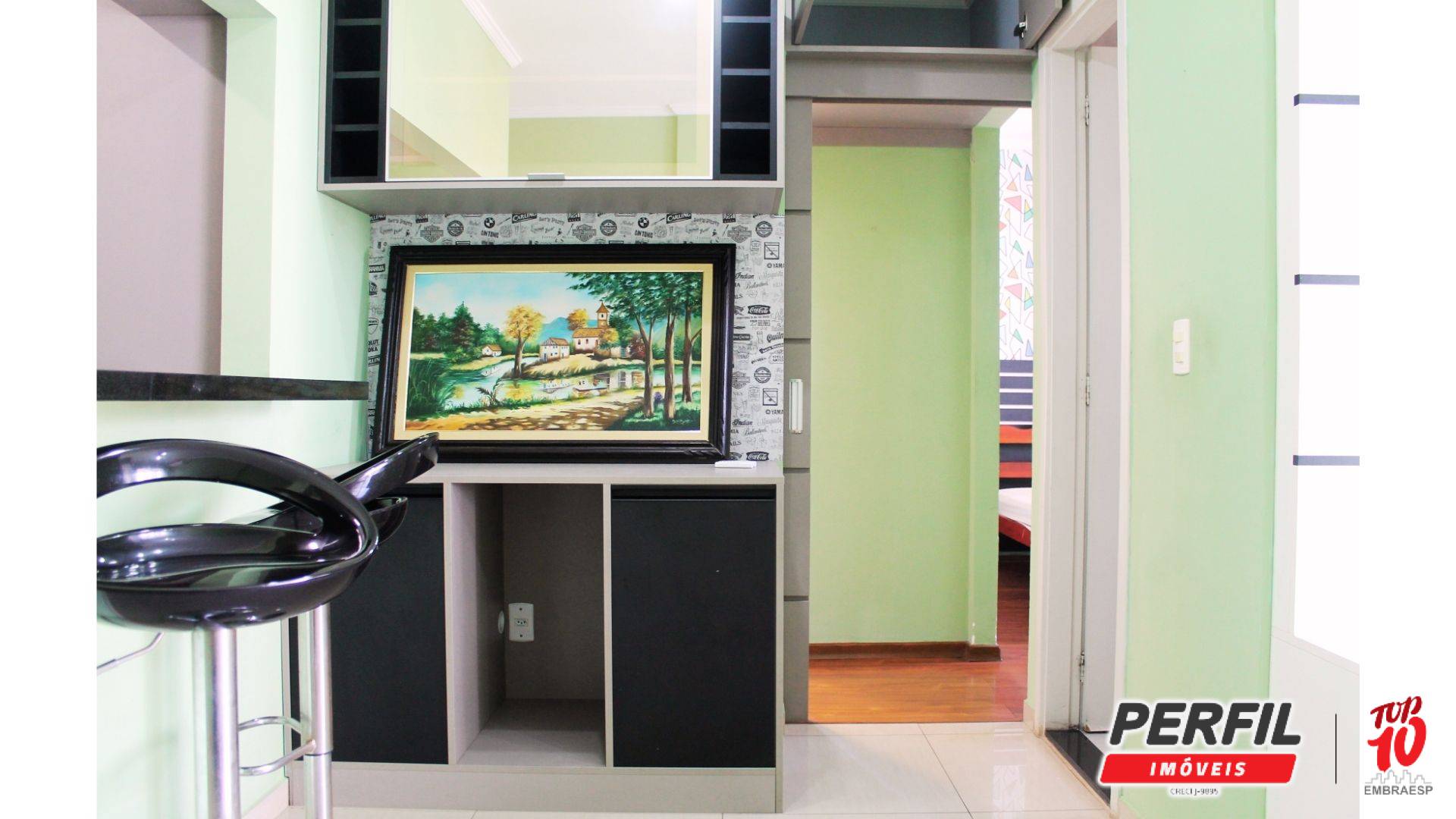 A cozinha americana é completa, repleta de armários planejados, equipada com fogão com forno e coifa. A lavanderia conta com máquina de lavar. O banheiro dispõe de armário e espelho, seguindo o mesmo padrão de qualidade do imóvel. Completa o conjunto uma vaga de garagem coberta, ampla e de fácil manobra.