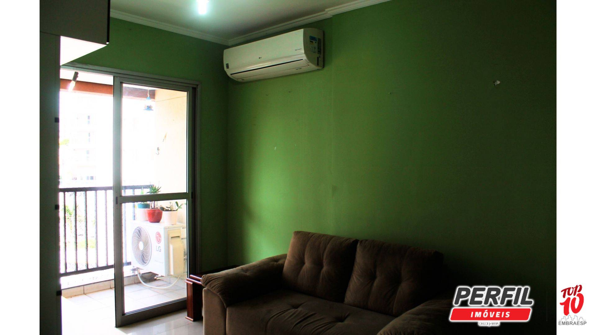 O imóvel possui 50m² muito bem distribuídos, contando com 01 dormitório amplo, equipado com armários planejados, além de um closet/escritório, ideal para home office. A sala é confortável e funcional, já mobiliada com rack, sofá e ar-condicionado, integrada à varanda, proporcionando ótima iluminação natural e ventilação.