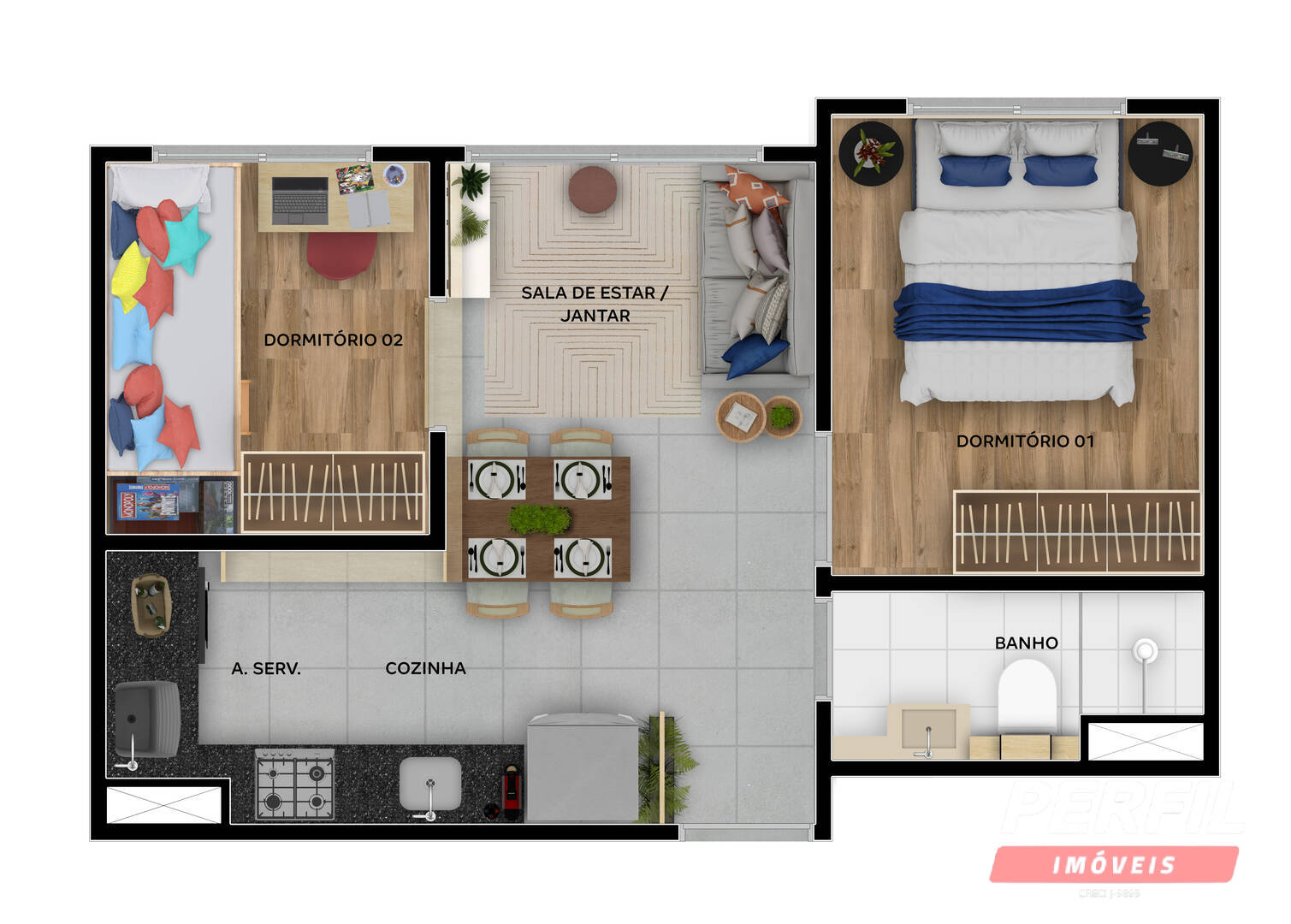 • Apartamentos de 2 dormitórios